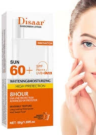 Disaar Sunscreen Lotion SPF 60 is a high-protection formula designed to shield your skin from harmful UV rays while keeping it hydrated and comfortable. Its lightweight, non-greasy texture absorbs quickly, helping prevent sunburn, tanning, and premature skin damage.
