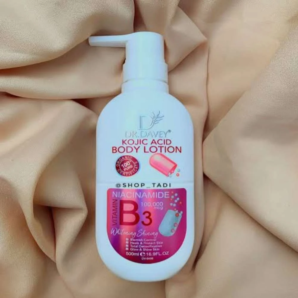 Dr Davey Kojic Acid Body Lotion with Niacinamide is a skin-brightening moisturiser designed to improve skin tone, reduce dullness, and provide long-lasting hydration. Enriched with kojic acid and niacinamide, this lightweight formula helps promote a clearer, smoother, and more radiant complexion.