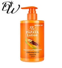 DW Papaya Lotion 300ml is a brightening and moisturising body lotion enriched with papaya extract and glutathione-based ingredients. It helps improve dull skin, reduce dark spots, and provide long-lasting hydration while leaving the skin soft and smooth.