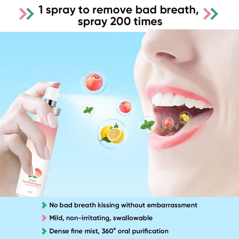 scoban mouth spray for bad breath fresh breath spray oral care mint peach breath freshener improve oral flora environment 8 hours continuous mouth freshening