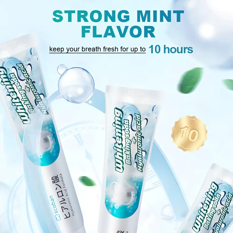 Experience a brighter, healthier smile with Scoban Teeth Whitening Toothpaste, powered by Japanese Hyaluronic Acid and Baking Soda. This advanced dual-action formula not only whitens teeth but also promotes strong gums, fresh breath, and long-lasting oral hygiene.